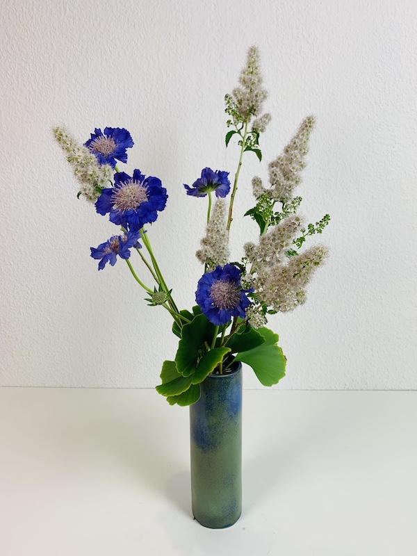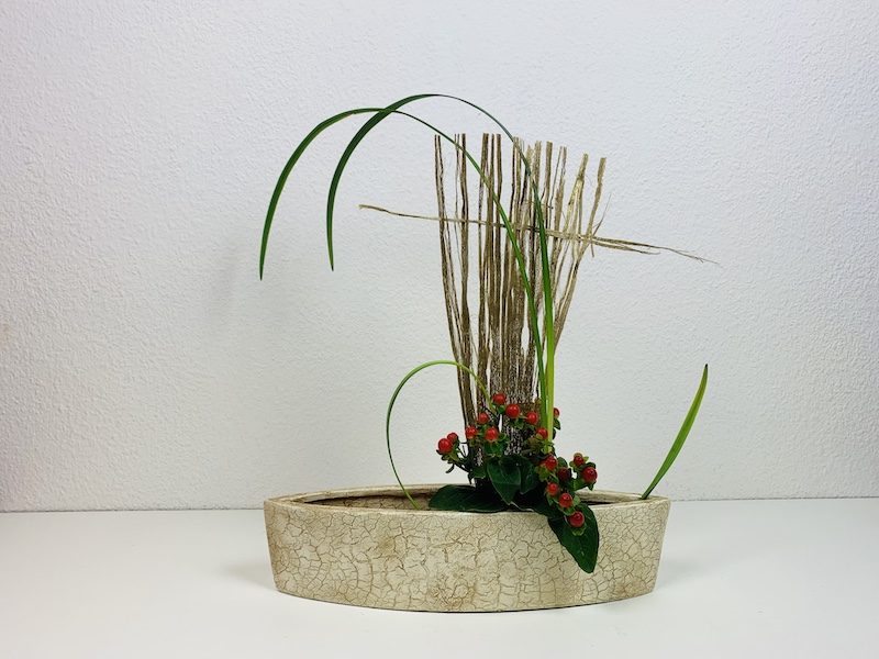 In de lessen voor beginners maken we 2 schikkingen, een schikking volgens de richtlijnen en technieken van de Sogetsu school en een schikking vrije stijl.